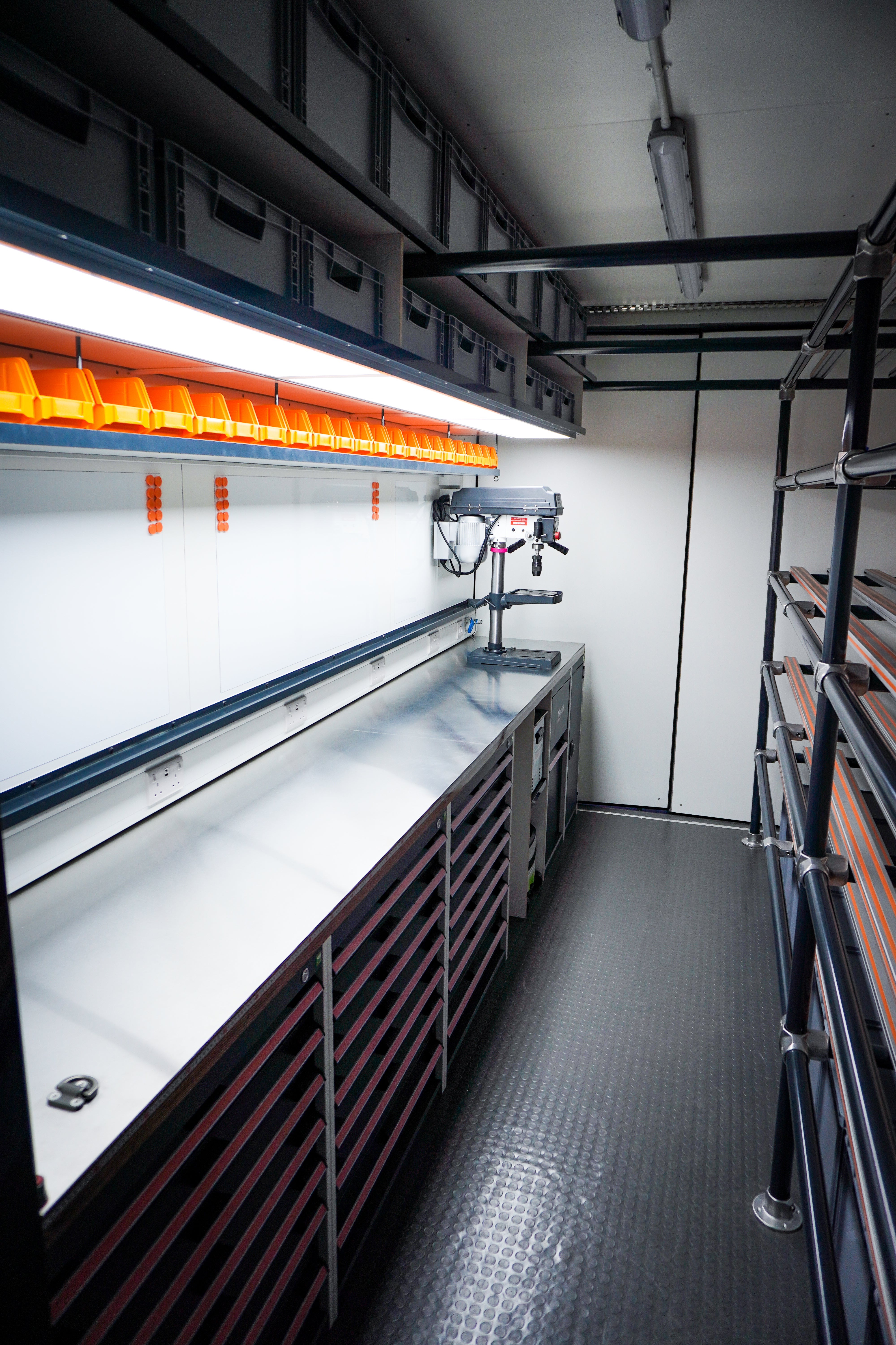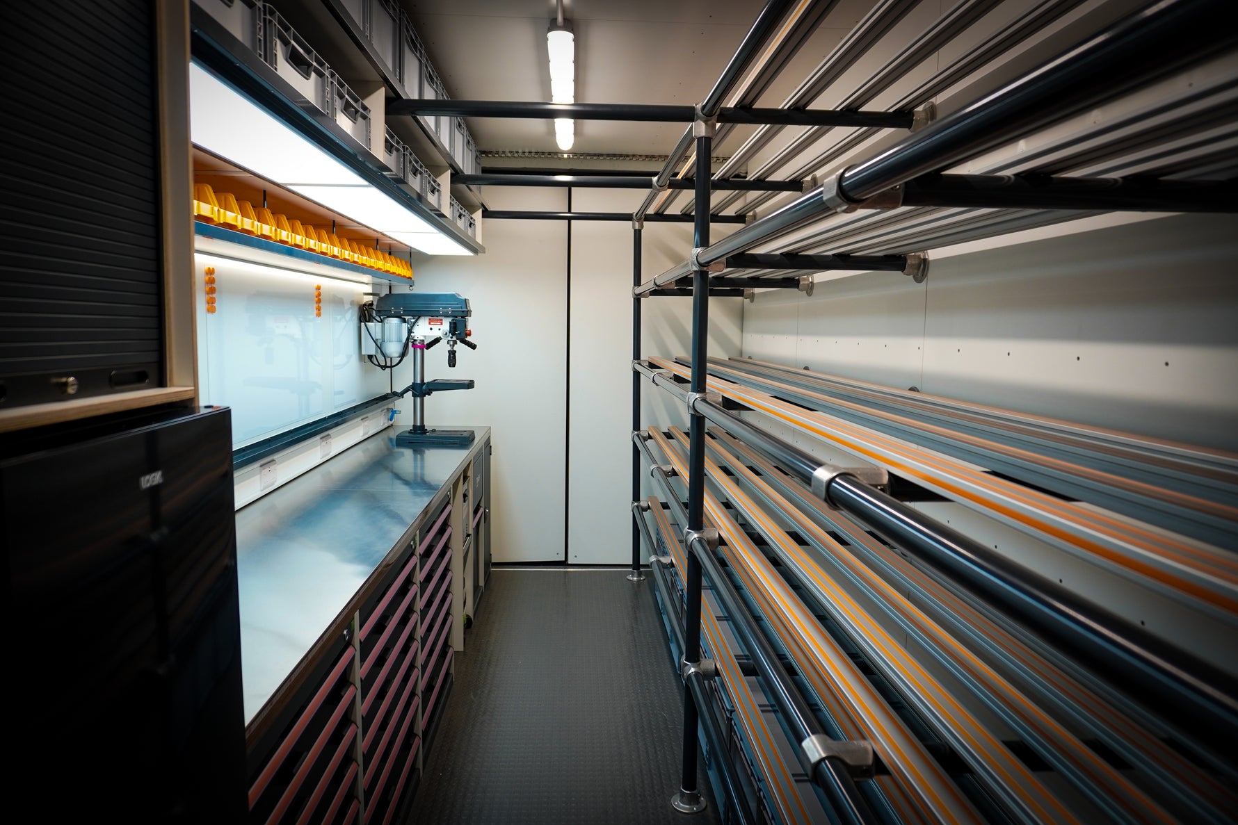 Keep energy levels high with an integrated fridge freezer and coffee station, and optimise safety and organisation with lockable COSHH cupboards and an additional rope locker.