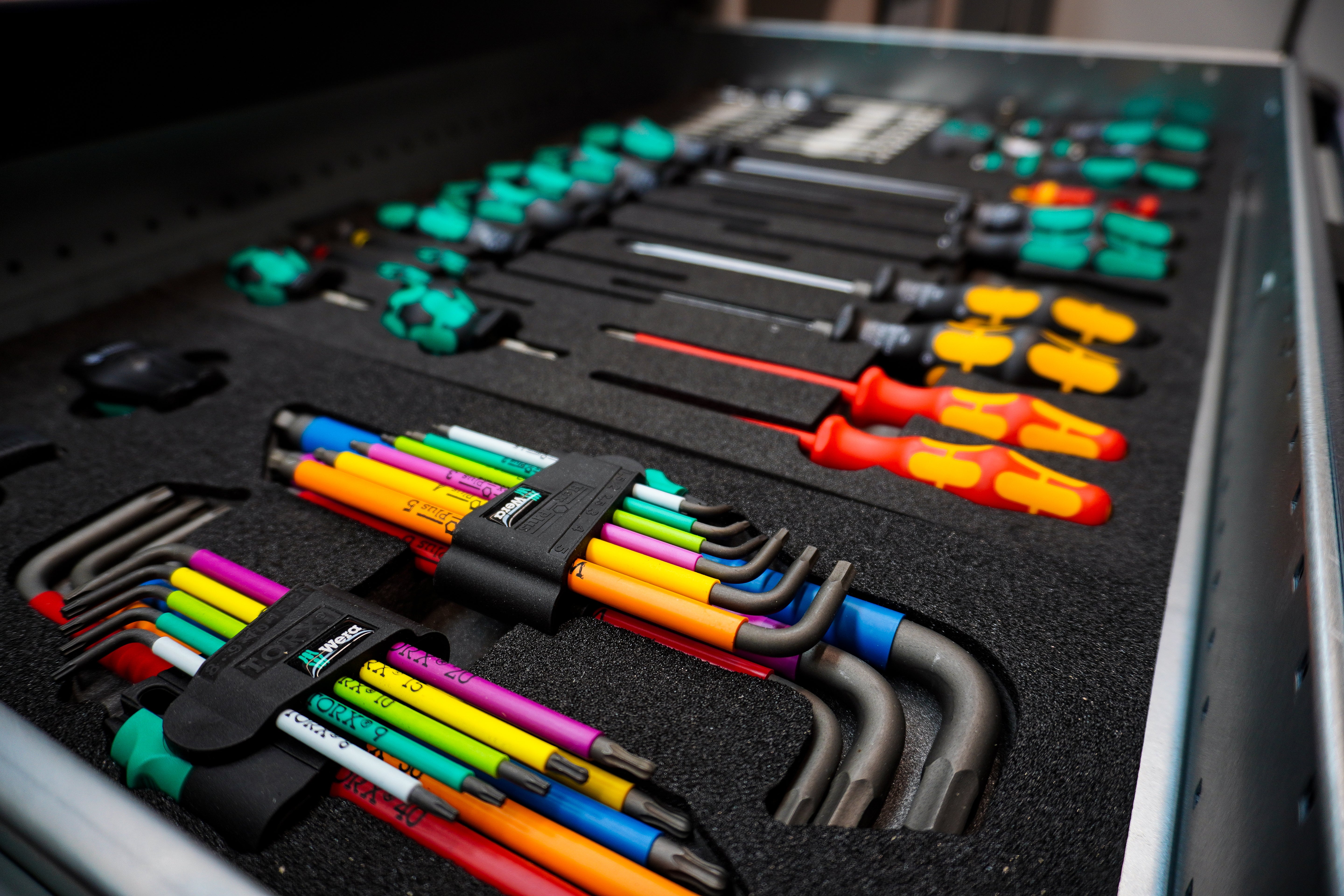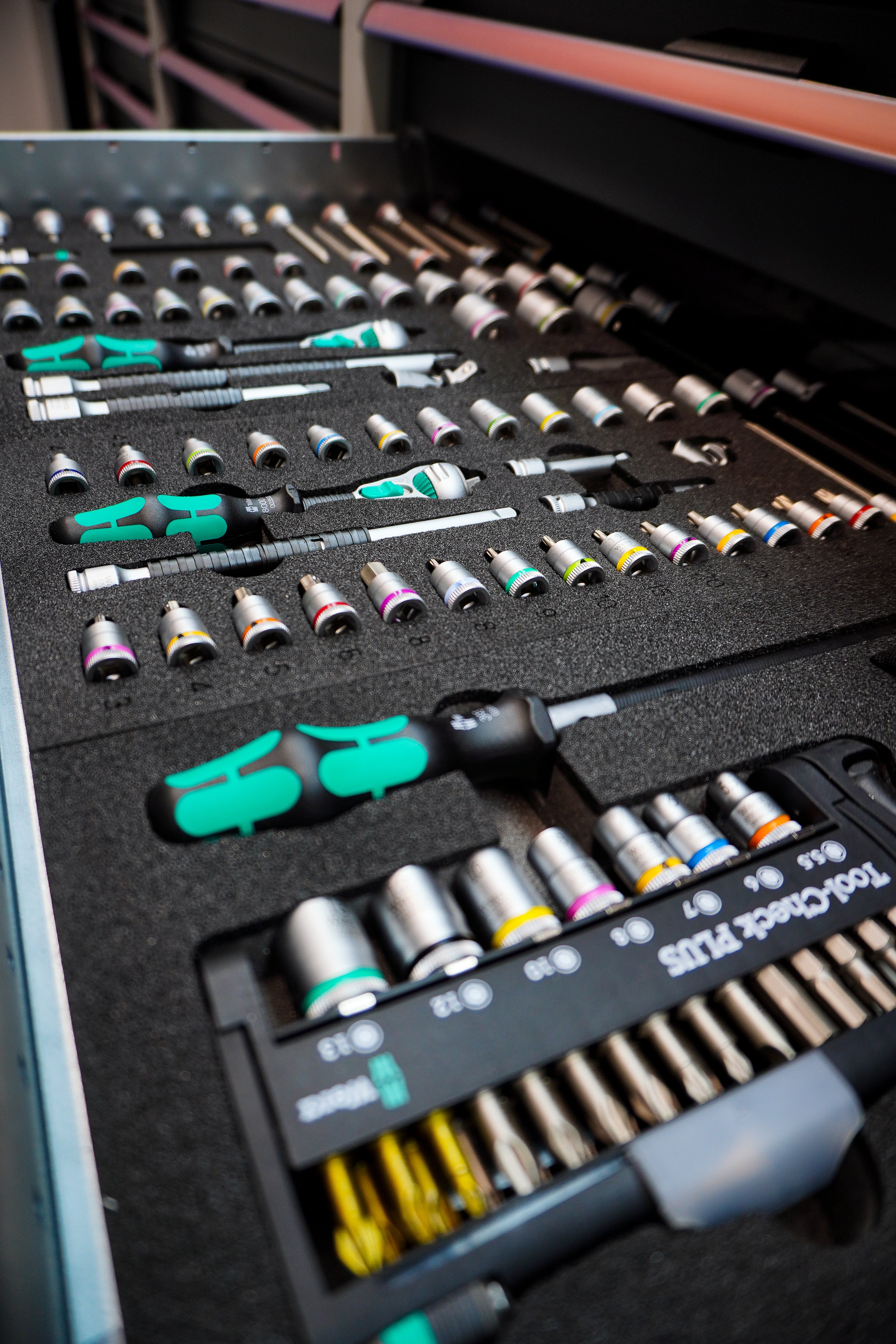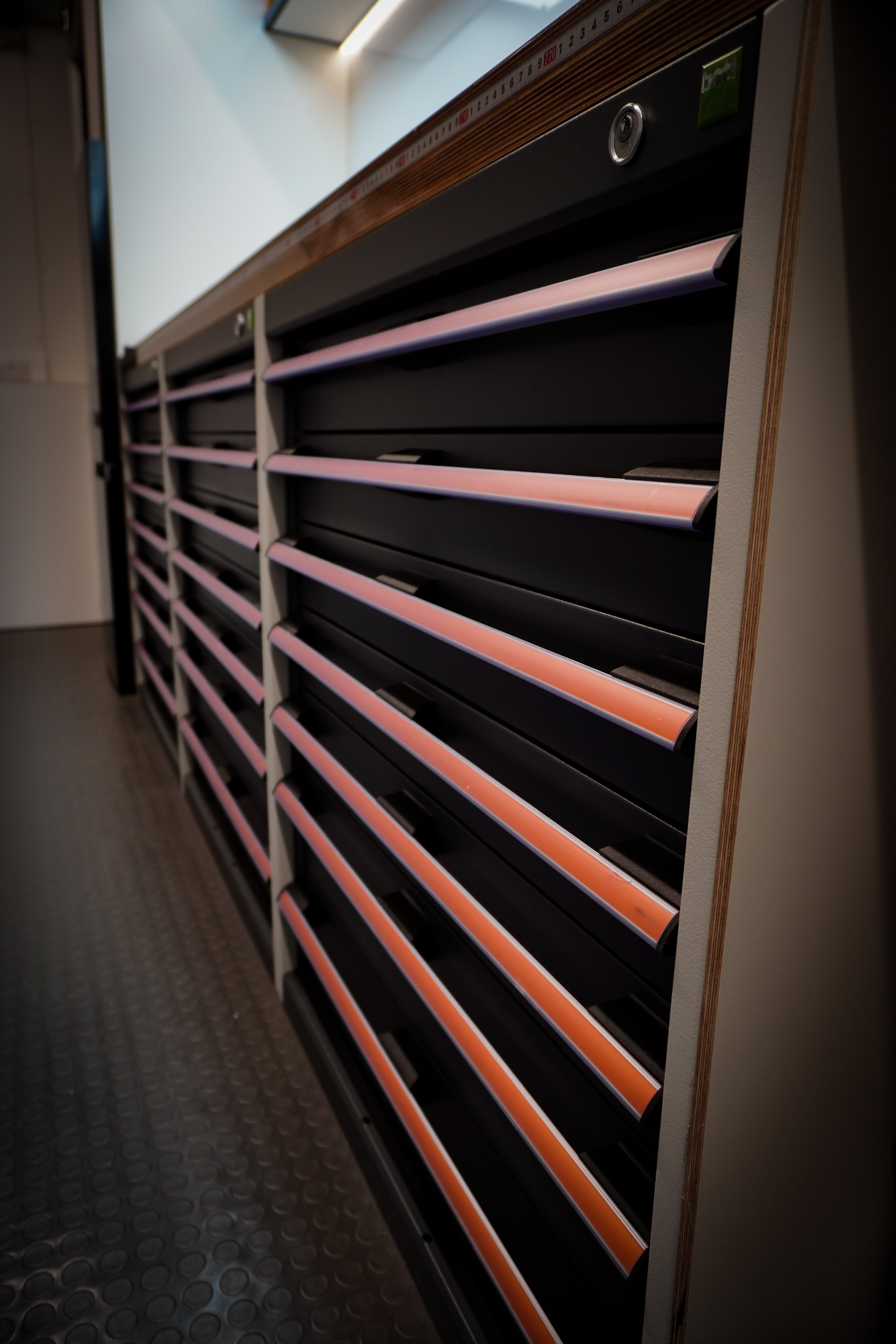 Integrated Bott units - custom fitted to requirements with tool inlays and hidden storage solutions for sanitary purpose.